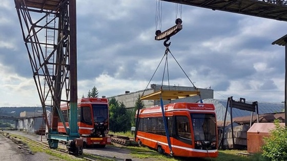 Ростовская область, 29 июля 2022. DON24.RU. Еще три новых красных трамвая отправили в Таганрог с завода в Челябинской области, сообщает компания «Синара ГТР – Таганрог». Им уже присвоили номера – 35, 36, 37. Один из трамваев находится в районе Самары. Еще два только вышли с конвейера Усть-Катавского вагоностроительного завода и готовятся к отправке в донской регион. Полностью модернизировать трамвайную инфраструктуру Таганрога планируют к осени 2022 года. К этому времени должны отремонтировать городское депо, восемь подстанций и диспетчерскую, заменить 45 км трамвайных путей, обновить парк, реконструировать и установить сотню новых остановок. Сейчас дорожники заканчивают перекладывать рельсы в пер. Смирновском между улицами Фрунзе и К. Либкнехта. После окончания работ там будут проходить маршруты №№ 1/3, 4, 8 и 9. Последним запустят трамвай № 5.