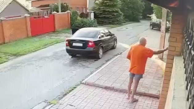 При этом, на кадрах видео, отчетливо видно, как пенсионер вышел на улицу в шортах и футболке, подошел с пустыми руками к машине, и достал оттуда бутылку.
