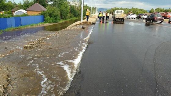 В Забайкалье экипажи ГИБДД патрулируют затопленную трассу