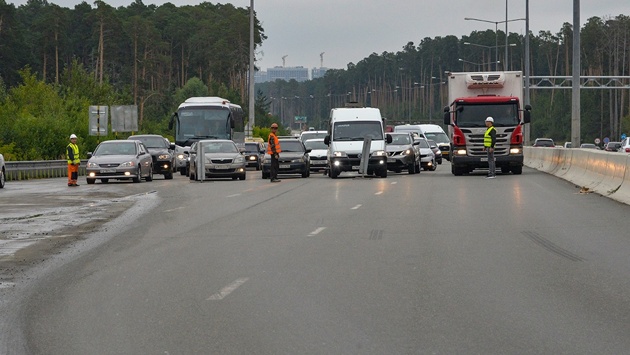 На время ремонта транспорт, идущий со стороны аэропорта Кольцово в центр Екатеринбурга, был перенаправлен в объезд по встречной полосе.