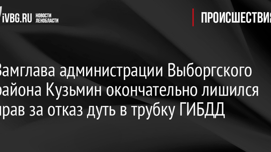 Замглава администрации Выборгского района Кузьмин окончательно лишился прав за отказ дуть в трубку ГИБДД