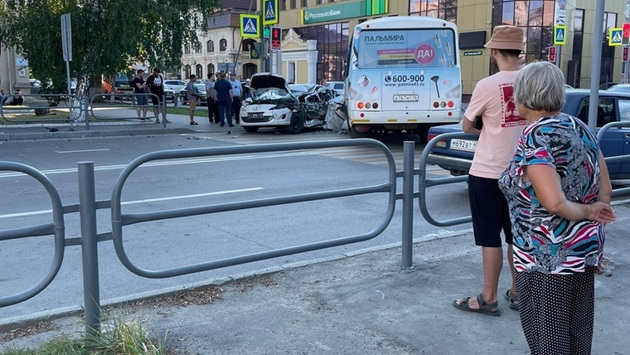 Курганцы сфотографировали ДТП с автобусом в центре города