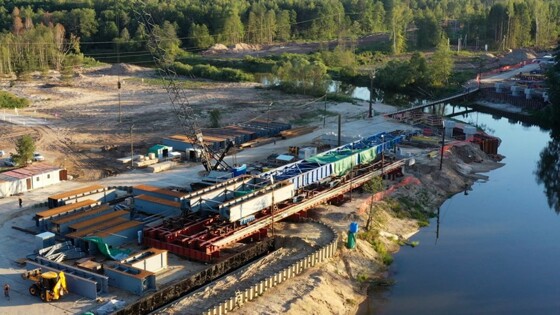 Сейчас подрядчики уже начали надвижку пролётных строений на готовые опоры: предполагается, что это позволит сократить сроки строительства моста через реку Киржач. В Автодоре отметили, что первое пролетное строение (пока что пройдено семь метров) надвигается с левого берега – в сторону столицы РФ.