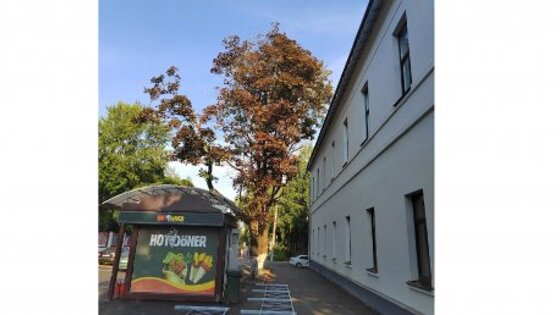 На снимках, которыми она поделилась с пользователями, - деревья напротив парка Белинского. Теперь они вынуждены существовать на узкой полоске земли, огороженной бордюрами. Крона одного из растений начала желтеть.