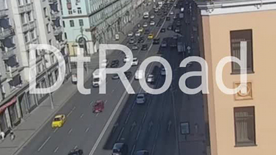 В центре Москвы на 2-й Тверской-Ямской улице автомобиль сбил человека, который переезжал дорогу на велосипеде. Видеозапись случившегося публикует столичный Дептранс в Telegram-канале.
