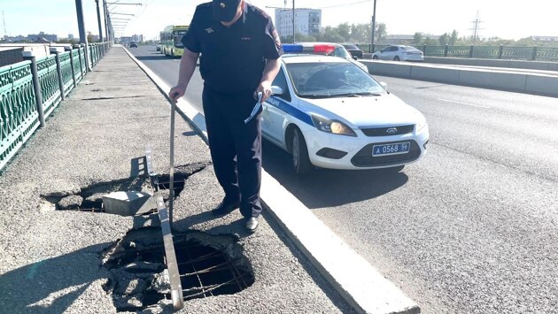 Оренбургская Госавтоинспекция возбудила административное дело после обнаружения ямы на мосту по ул. Терешковой.
