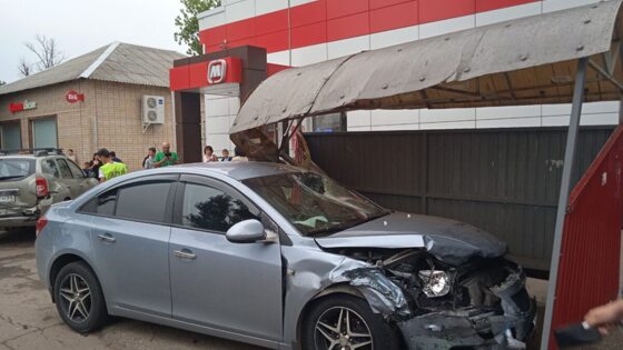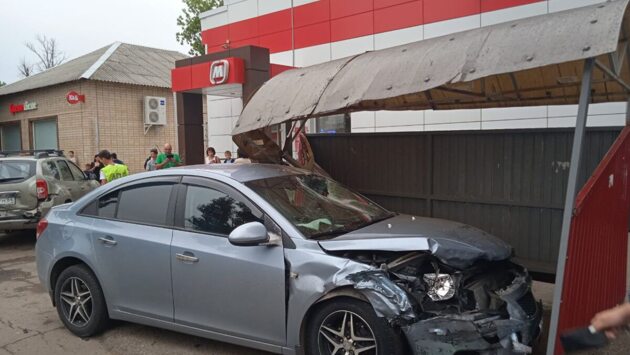 Около «Магнита» под Саратовом «Chevrolet» протаранил две машины и остановку