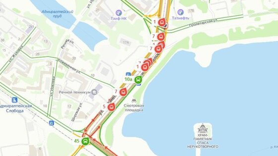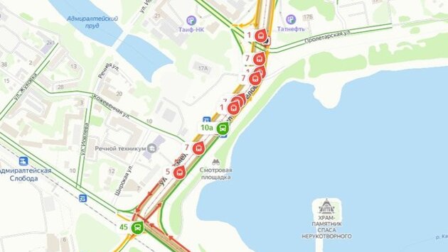 В Казани на улице Несмелова произошла авария — на Большом Казанском кольце встали в ряд десять трамваев, согласно данным сервиса "Яндекс.Карты".