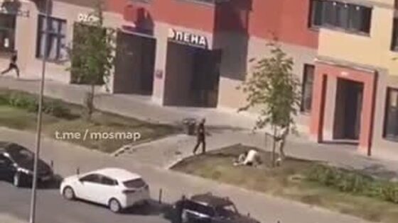 На кадры попала группа неизвестных, которые дрались около многоэтажного дома. На видео слышны звуки стрельбы и просьбы людей вызвать полицию. Затем показывается место драки: на дороге лежат гильзы и видны следы крови.