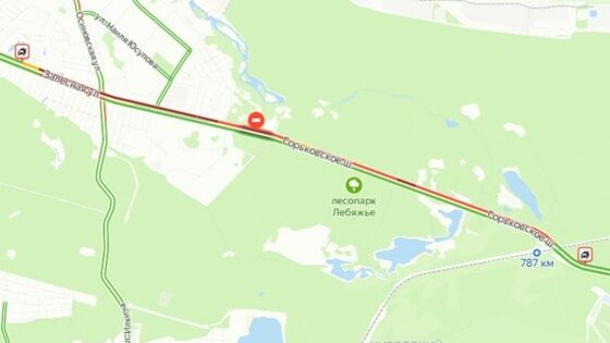 Пробка тянется от Горьковского шоссе. ДТП произошло в левом ряду на улице Залесной, на Горьковском шоссе также случились две аварии.