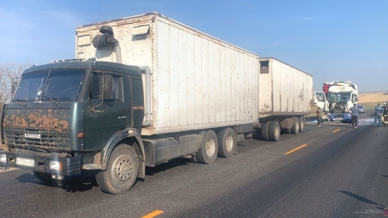 По данным регионального ГУ МВД России, в 7.40 на 778-м км трассы «Каспий» 52-летний водитель за рулем фуры «Рено» с полуприцепом не выбрал безопасную дистанцию и врезался в КамАЗ 53213, который двигался впереди в попутном направлении.
