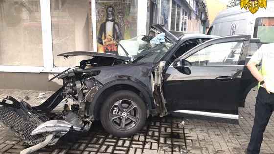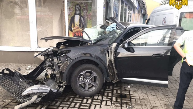 Две иномарки выбросило на тротуар в центре Калуги