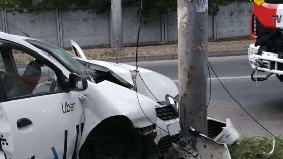 В Калуге уснувший за рулем таксист протаранил столб. Есть жертвы