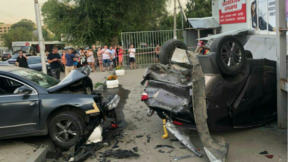 Как видно наобнародованных ГИБДД фотографиях, обе машины вылетели натротуар внескольких метрах отавтобусной остановки, одна изних сбила соответствующий дорожный знак.