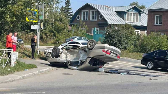 «Волга» перевернулась на крышу после ДТП на перекрестке в Новосибирске