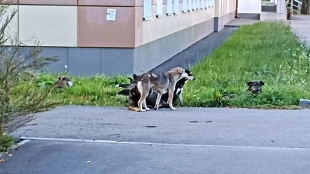 В Кемерове стая бездомных собак заставила водительницу электросамоката сменить курс: животные громко и агрессивно лаяли на женщину.