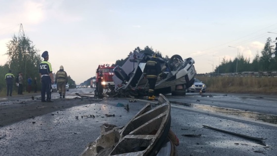 На Режевском тракте под Екатеринбургом 31 августа произошла смертельная авария. Внедорожник с лодкой-прицепом при обгоне зацепил попутный КамАЗ и перевернулся, грузовик после столкновения ушел в кювет.