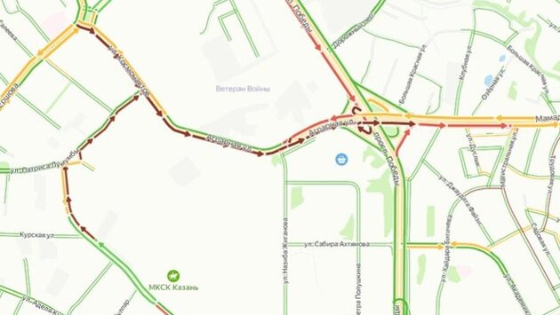 Аварии произошли на Мамадышском тракте и на проспекте Победы. Движение сильно затруднено. Стоят "въездные" на этот участок — проспект Альберта Камалеева и улица Патриса Лумумбы, улицы Магистральная и Трудовая.