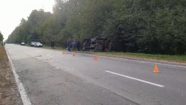 В результате аварии микроавтобус улетел в кювет, где опрокинулся на бок. Травмы различной степени тяжести получили пять человек.