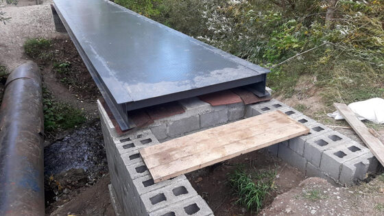 Вместо деревянного моста там появится современное металлическое мостовое сооружение. В августе подрядчик начал работы по установке бетонных балок и обустройству пешеходного прохода между ними.