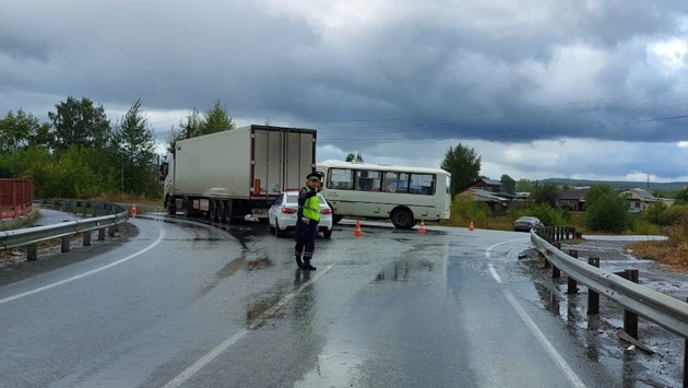 По предварительным данным, 39-летний водитель грузовика Volvo FH на нерегулируемом перекрестке не уступил дорогу маршрутному ПАЗу, совершавшему поворот направо. Полицейским мужчина, стаж вождения которого превышает 20 лет, пояснил, что в последний момент увидел приближавшийся автобус, применил экстренное торможение, но избежать контакта не удалось.