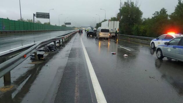 Также от столкновения Toyota въехала в стоящий на дороге грузовик Volvo с полуприцепом KRONE.