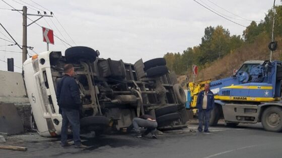 В Новосибирске в субботу, 17 сентября, грузовик перевернулся при спуске на улицу Большевистскую. Об этом сообщили очевидцы в группе «АСТ-54» в социальной сети ВКонтакте.