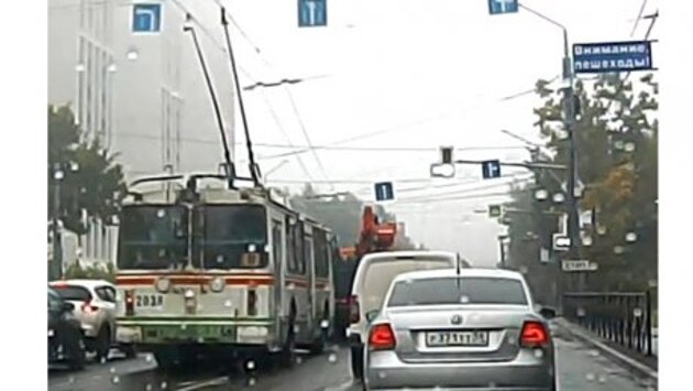 В Пензе на пересечении улиц Окружной и Мира регулярно водители троллейбусов регулярно создают пробку.