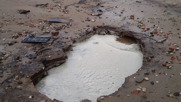 Фонтан из образовавшегося провала в земле в Автозаводском районе устранили
