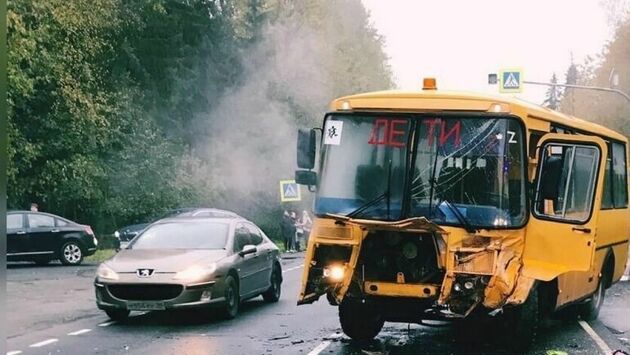 ДТП произошло утром 4 октября на автомобильной дороге А120. Легковой автомобиль столкнулся с автобусом, который вез школьников в учебное заведение.