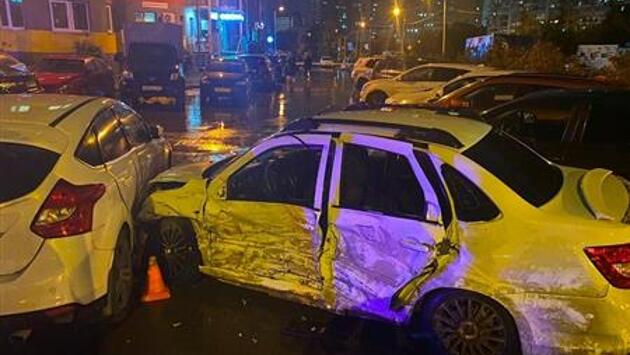 После столкновения Granta отбросило на Toyota RAV4, который находился на перекрестке и пропускал транспортные средства, движущиеся по главной дороге. Granta по инерции продолжил движение и допустил наезд на Nissan Qashqai, Ford Focus и еще один Ford Focus, которые находились на парковке.