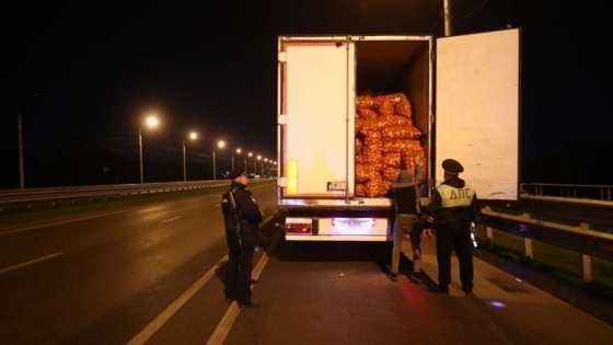 На въезде на мост через Волгу в Центральном районе автолюбителей встречает патруль ДПС, усиленный сотрудниками с автоматами. Полицейские останавливают машины, выясняют, что везут, и проверяют документы в основном у водителей грузовых машин.
