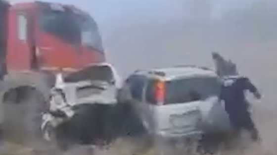 Момент аварии с 10 машинами под Красноярском попал на видео
