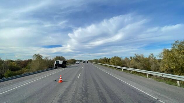 - В 13:25 на 88 км автодороги «Морозовск-Цимлянск-Волгодонск» 21-летний водитель, управляя микроавтобусом Volkswagen 2DLT35, по предварительны данным, уснул за рулем, в результате чего автомобиль в неуправляемом состоянии съехал с дороги и врезался в отбойник, после чего перевернулся, - говорится в сообщении.