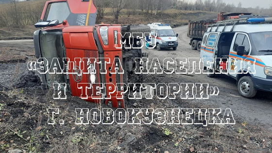 В Новокузнецке понадобилась помощь спасателей водителю грузовика, который опрокинулся набок.