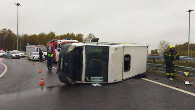 МЧС: девять человек пострадали в ДТП с участием микроавтобуса на Киевском шоссе в Москве