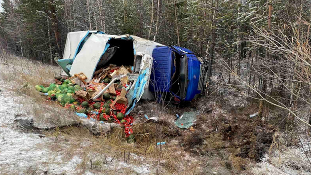 Грузовик Hundai опрокинулся на трассе Сургут - Салехард. ДТП произошло в субботу утром, 22 октября. Из тента машины высыпались арбузы и другие овощи. Как пояснили в окружной Госавтоинспекции, водитель грузовика съехал с дороги, так как не справился с управлением. Пострадал только сам водитель Hundai, его госпитализировали. Подписывайтесь на Ямал1 в VK, ОК и следите за главными новостями Ямала в нашем telegram-канале..