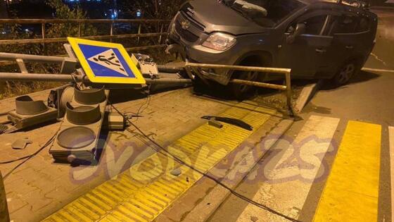 Кадрами нетипичного ДТП поделились жители Владивостока. Злоумышленники снесли дорожный знак, ограждения и убежали с места аварии.