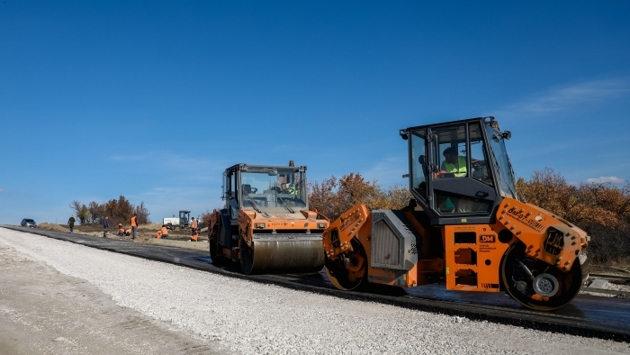 Дорожники уже уложили асфальтобетон по всей ширине проезжей части. Сейчас специалисты выполняют обустройство обочин и планировку откосов насыпи.