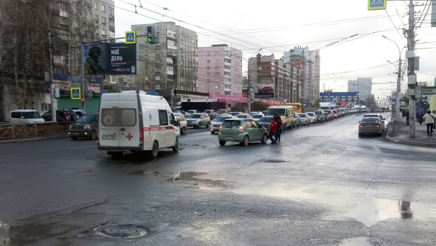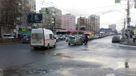 ДТП с участием скорой помощи произошло в Новосибирске в понедельник, 24 октября. Понижение температуры и осадки осложнили дорожную ситуацию.