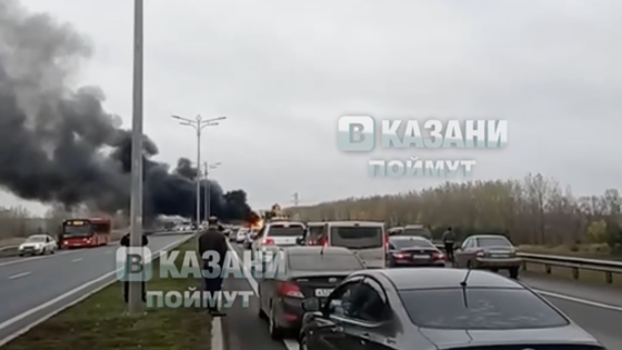 Автобус полностью сгорел на трассе, ведущей в аэропорт Казани. Об этом сообщает Telegram-канал "В Казани поймут". По данным канала, данный автобус - один из колонны, которая перевозила мобилизованных. Автобус возвращался после рейса, в салоне кроме водителя никого не было. Судя по кадрам видео, водитель транспортного средства, заметив возгорание, смог припарковаться на обочине. На место происшествия прибыл пожарный расчет, который потушил огонь. Салон автобуса полностью выгорел. О причинах возгорания не сообщается. Ранее сообщалось, что три человека погибли в ДТП на трассе в Беловском округе Кемеровской области. Полиция выясняет причины и обстоятельства, которые привели к дорожно-транспортному происшествию.