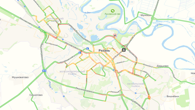 Серьёзно осложнено движение в центре города и на выездах из микрорайонов. Значительные дорожные заторы на Московском и Касимовском шоссе, крайне сложно выехать из Канищева.