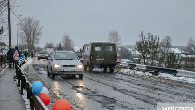В Вологодской области торжественно открыли мост в грязи и с разбитым асфальтом