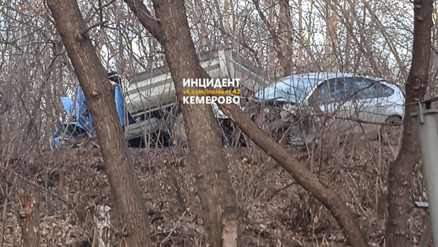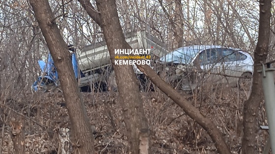 Грузовик слетел в кювет после ДТП с пьяным водителем в Кемерове