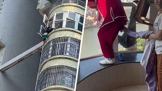 В Китае спасли 85-летнего мужчину, свисавшего из окна многоэтажки