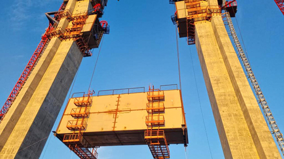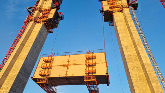 Строители четвертого моста через Обь в Новосибирске завершили установку верхней перемычки пилона