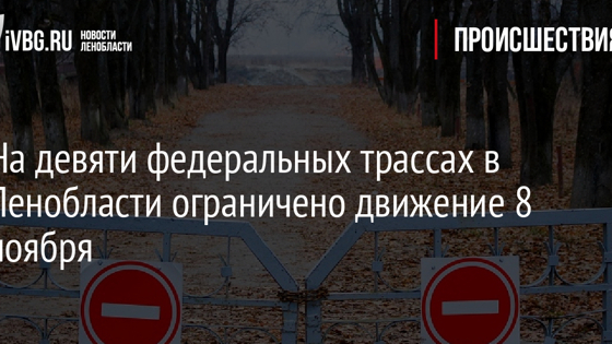 Как сообщает ФКУ Упрдор «Северо-Запад», 8 ноября при проведении дорожных работ будет ограничено движение на следующих участках трасс в Ленобласти. Р-21 «Кола» (Санкт-Петербург – Петрозаводск – Мурманск – Печенга – граница с Королевством Норвегия): км 12-179 ограничение скорости движения в оба направления с 08:00 до 19:00, ремонт, выправка, установка дорожных знаков; км 73-76 ограничение скорости движения в оба направления с 08:00 до 19:00, профилирование обочины автогрейдером; км 25,46 ограничение скорости движения в оба направления с 08:00 до 19:00, ремонт обочины. М-10 «Россия» (Москва – Тверь – Великий Новгород – Санкт-Петербург): км 593-674 ограничение скорости движения в оба направления с 08:00 до 19:00, ремонт, выправка, установка дорожных знаков; км 10-16 г. Тосно ограничение скорости движения в оба направления с 08:00 до 19:00, промазка открытых швов и трещин а/б покрытия битумной мастикой; км 667, км 10 г. Тосно ограничение скорости движения в направлении г. Санкт-Петербурга с 08:00 до 19:00, ремонт СБО; км 654 ограничение скорости движения в направлении г. Москвы с 08:00 до 19:00, ремонт СБО. А-120 «Санкт-Петербургское южное - полукольцо» (Кировск – Мга – Гатчина – Большая Ижора): км 106-149 ограничение скорости движения в оба направления с 08:00 до 19:00, ремонт, выправка, установка дорожных знаков. А-114 «Вологда – Тихвин»: км 479-532 ограничение скорости движения в оба направления с 08:00 до 19:00, ремонт, выправка, установка дорожных знаков. А-181 «Скандинавия» (Санкт-Петербург – Выборг – граница с Финляндской Республикой): подъезд к г. Выборгу № 1 км 0-5, ограничение скорости движения в оба направления с 08:00 до 20:00, очистка водоотводных лотков. А-181 «Магистральная»: км 0-30 ограничение скорости движения в оба направления с 08:00 до 20:00, ликвидация деформаций а/б покрытия. А-121 «Сортавала» (Санкт-Петербург – Сортавала – автомобильная дорога Р-21 «Кола»): км 0-37 ограничение скорости движения в оба направления с 08:00 до 20:00, установка сигнальных вех; км 0-37 ограничение скорости движения в оба направления с 08:00 до 20:00, уборка различных предметов и мусора с элементов дороги; км 37-78 ограничение скорости движения в направлении Ленинградской области с 08:00 до 20:00, установка сигнальных вех; км 37-78 ограничение скорости движения в направлении Ленинградской области с 08:00 до 20:00, очистка а/б покрытия от пыли и грязи. А-180 «Нарва» (Санкт-Петербург – граница с Эстонской Республикой): км 51-53 ограничение скорости движения в направлении г. Санкт-Петербурга с 08:00 до 17:00, очистка водоотводных лотков. Р-23 (Санкт-Петербург – Псков – Пустошка – Невель – граница с Республикой Белоруссия): км 35-36 ограничение скорости движения в направлении г. Пскова с 08:00 до 17:00, очистка водоотводных лотков; км 142+540 ограничение скорости движения в направлении г. Санкт-Петербурга с 08:00 до 17:00, замена СБО; подъезд №1 к г. Луга ограничение скорости движения в направлении г. Санкт-Петербурга с 08:00 до 17:00, замена СБО.