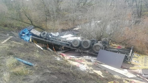 В Сасовском районе вылетел с трассы грузовик Mercedes-Benz
