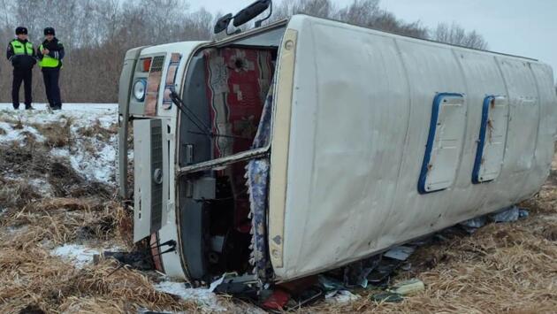 Сегодня в Новосибирской области в 16:30 по местному времени в Татарском районе на 11-м км автодороги Татарск – Козловка произошло опрокидывание пассажирского автобуса ПАЗ. Установлено, что водитель 1982 года рождения, управляя рейсовым автобусом, двигался по маршруту Татарск – Рождественка и допустил съезд в правый кювет с последующим опрокидыванием. По предварительным данным, в результате ДТП пассажирка автобуса – девочка семи лет – от полученных травм скончалась на месте. В настоящее время имеются сведения о пяти пострадавших, находившихся в салоне автобуса. Им оказана медицинская помощь, они госпитализированы. Характер травм уточняется. Всего в салоне находилось 14 пассажиров. Водитель освидетельствован на месте. По результатам исследования, состояние опьянения не установлено. В настоящее время сотрудниками Госавтоинспекции устанавливаются все обстоятельства данного дорожно-транспортного происшествия.