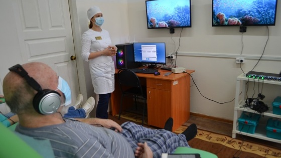 В арсенале тамбовских медиков появились новейшие методики восстановления пациентов после инсультов, инфарктов, операций на позвоночнике, тяжелых форм коронавируса и других заболеваний благодаря организации работы многопрофильного отделения реабилитации в областной клинической больнице. В основе работы отделения заложен мультидисциплинарный подход. С каждым пациентом работает бригада врачей, в состав которой входят узконаправленные специалисты. Среди них - невролог, кардиолог, логопед, психолог, эргоспециалист, который обучает пациентов повседневным бытовым навыкам. Программа реабилитации обязательно включает физиотерапию, массаж, лечебную физкультуру.«Реабилитация сегодня является одним из приоритетных направлений в развитии здравоохранения. Основная задача -восстановление нарушенных функций организма, которые были вызваны болезнью или тяжелой травмой. Реабилитационная медицина добилась высоких результатов. И эти достижения мы можем применить на практике», - подчеркивает заведующий реабилитационным отделением Алексей Сажнев.Восстановить утраченные функции помогают уникальные аппаратно-программные комплексы. Один из них – экзокисть. Пациент при помощи электрической активности мозга посылает с помощью компьютера биоимпульс на парализованную руку. Если сигнал выполнен правильно, то механическая часть аппарата позволяет согнуть и разогнуть кисть. Акустический аппаратно-программный комплекс позволяет с помощью звука и зрительного воздействия быстрее восстанавливать пораженные участки мозга. Направление в отделение выдает лечащий врач. Одновременно оно может принять 30 человек. Реабилитационное отделение только начинает прием пациентов. Однако даже по итогам первых дней работы медики видят положительные результаты. «К нам попала парализованная женщина после инсульта. Она даже не могла повернуться на кровати на другой бок без посторонней помощи. А через пять дней уже самостоятельно садится, с посторонней помощью может даже стоять. Мы надеемся, что она вернется к обычной жизни, сможет ходить и полностью себя обслуживать», - делится Алексей Сажнев.Оборудование для отделения реабилитации закупили благодаря нацпроекту «Здравоохранение», который продолжает развиваться и с этого года включает федеральную программу «Оптимальная для восстановления здоровья медицинская реабилитация». Всего приобрели 42 единицы медоборудования на 32 миллиона рублей.Программа будет развиваться и к 2025 году планируют открыть реабилитационные койки во всех межрайонных сердечно-сосудистых центрах.